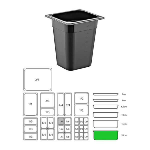 ΔΟΧΕΙΟ ΜΑΥΡΟ PP GN1/6-20cm (ΧΩΡΙΣ ΚΑΠΑΚΙ) / 9224
