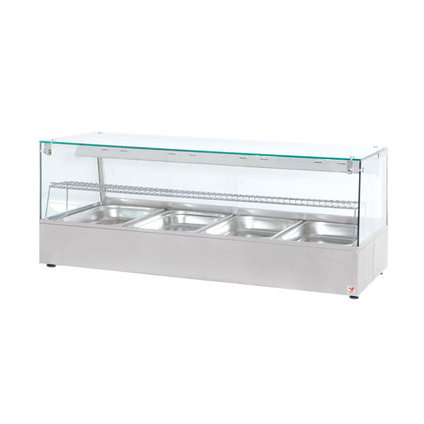 Είναι εξοπλισμένη με 4 λεκάνες G/N 1/1 – 65mm & Θερμοστάτη 90C