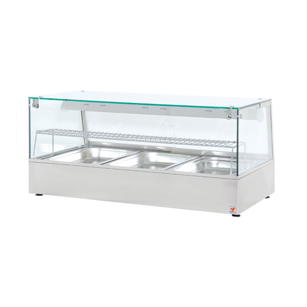 Είναι εξοπλισμένη με 3 λεκάνες G/N 1/1 – 65mm & Θερμοστάτη 90C
